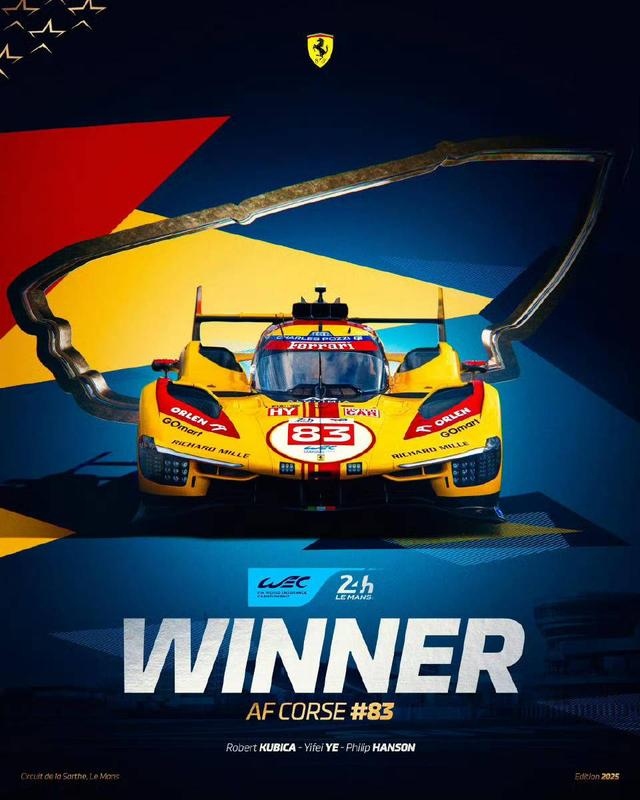 中国车手历史性登顶!叶一飞助法拉利夺勒芒24小时耐力赛三连冠