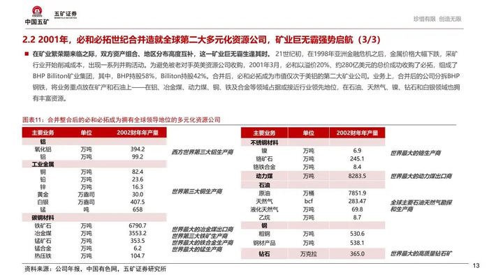 选自五矿证券已经发布的研究报告《矿业巨头启示录系列之三:百年基业,必和必拓矿业帝国缔造史》,对外发布时间:2025/6/12,具体分析内容(包括风险提示等)请详见完整版报告。若因对报告的摘编产生歧义,应以完整版报告内容为准。