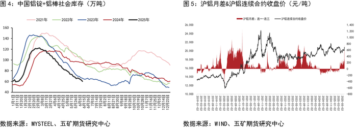值得注意的是,类比2023年,国内铝锭库存降至低位后,月差在高位维持了较长时间,近端期货合约情绪面持续相对积极。