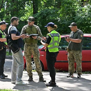 当地时间2024年6月7日,乌克兰基辅,乌克兰军人和警察对适龄男性进行证件抽查,并发出了军队征召令。视觉中国