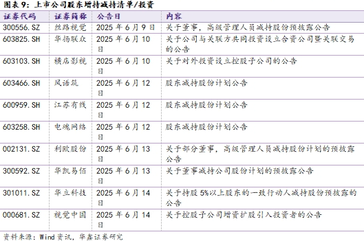市场综述:2025 年6月9日-2025 年 6 月 13日,上证综指、深证成指、创业板指的涨跌幅分别为-0.25%、-0.60%、0.22%。细分到传媒各子行业来看,网络彩票指数涨幅较大,万得虚拟现实指数涨幅较小。周涨跌幅个股中,涨幅 Top3 分别为元隆雅图、粤传媒、欢喜传媒,分别上涨42.87%、31.85%、24.39%;跌幅 Top3 分别为祥源文旅、湖北广电、中国科传,分别下跌15.93%、9.76%、9.52%。