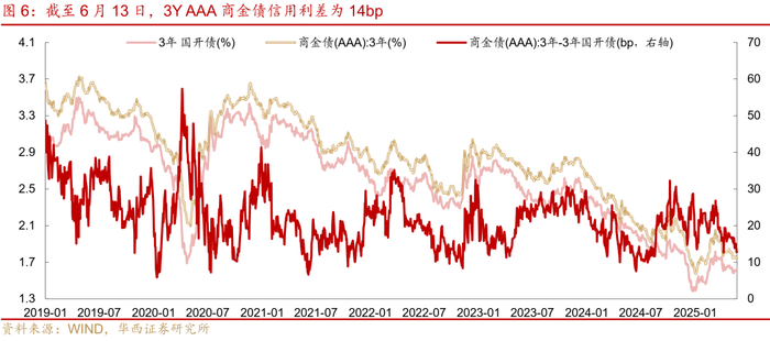 3-5年AA和2-3年AA(2)城投债兼具票息和流动性,信用利差也具有一定的压缩空间,可作为进可攻退可守的配置品种。从存量城投债规模和收益率来看,截至2025年6月13日,3-5年AA和2-3年AA(2)城投债加权平均收益率在2.20%-2.24%之间,并且存量规模较大,分别有8314、10910亿元,可选范围较广。信用利差来看,3年AA和AA(2)城投债信用利差距离2024年1/4分位数值还有4-6bp的空间,相比利差均值-1倍标准差高3bp。