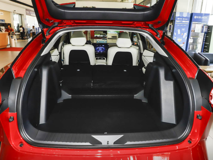 而上面我们提到,bZ5的车身比例趋近于轿车,如果是和常规轿车相比,bZ5的掀背尾门,就带来了更灵活、宽裕的储物能力。