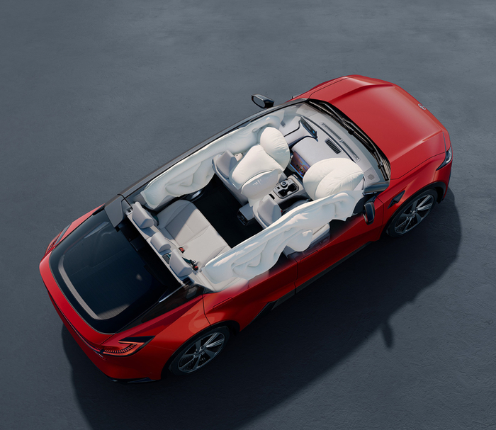 例如气囊方面,除了基础的6气囊外,bZ5还全系标配了主、副驾的膝部气囊,以及前排的中间气囊,气囊的覆盖面非常全面。