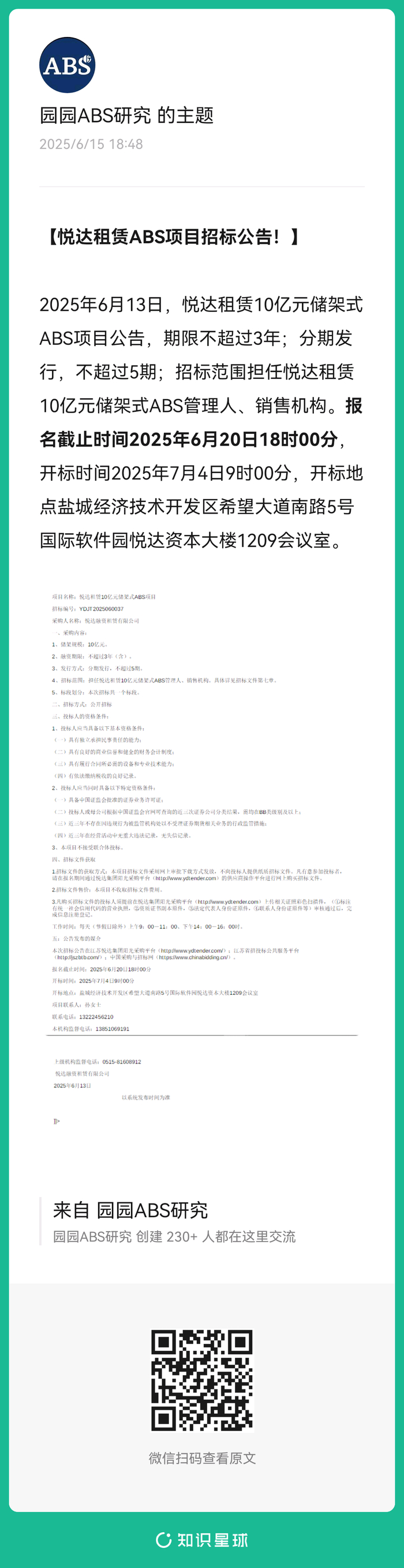 悦达租赁ABS招标公告!