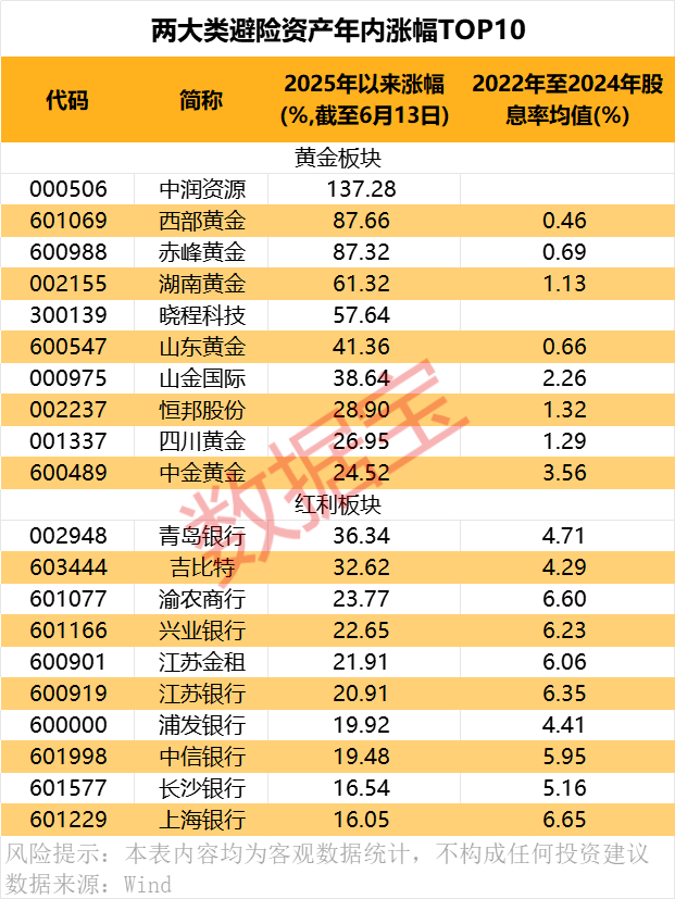避险资产年内整体大幅跑赢市场 黄金股表现优异