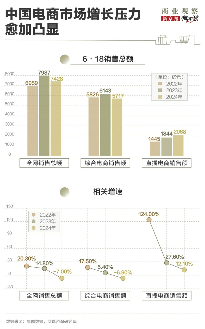 女装市场面临的收缩压力,实际上是长期结构性问题的集中爆发。消费者信任在流失,行业整体的发展态势持续放缓。以“6·18”销售额为例,全网销售额增速从2022年的20.3%严重下跌到2024年的-7.0%。在这样的背景下,女装市场从“量”的扩张进入了“质”的拐点。