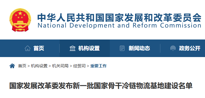 公布新一批国家骨干冷链物流基地建设名单
