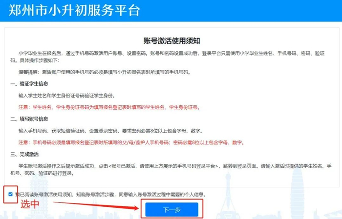 1.激活学生账户所用手机号码必须是《就近入学报名登记表》中所填写的手机号码。
