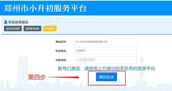 6.查看学生信息无误后,点击“跳转登录”