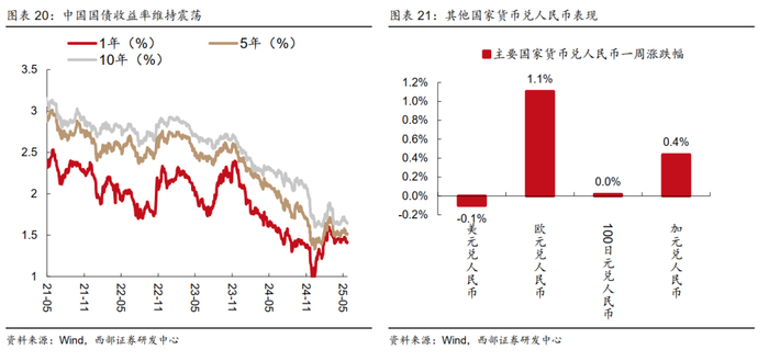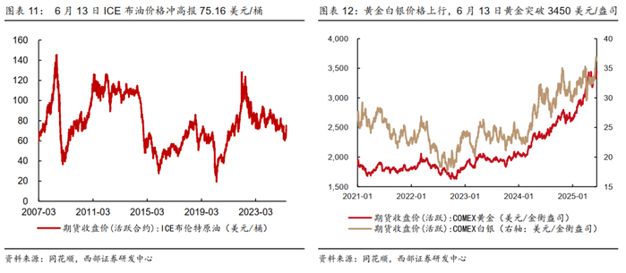截至6月13日,A股和港股涨跌分化,美股走弱。受到中东军事冲突直接触发了短期的全球避险情绪,导致本周风险资产普遍疲软,而金价拐头上行。另外,冲突直接带动油价攀升,对欧美已经降温的通胀数据形成新的上行风险,2年期和10年期美债收益率上行。相较之下,国内宏观基本面维持平稳。从汇率的角度来看,美元兑人民币仍然维持双向震荡,欧元和加元则兑人民币表现更强势。