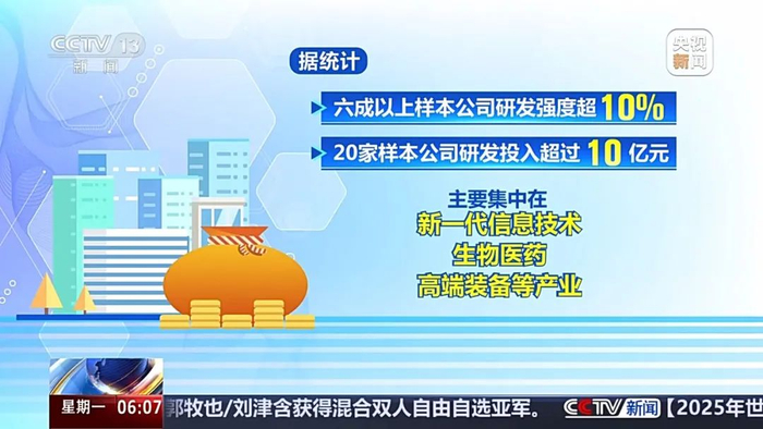 据统计,以“硬科技”旗舰指数——科创50指数为例,指数样本公司2024年研发费用共计630亿元,同比增长6.4%,六成以上样本公司研发强度超10%,20家样本公司研发投入超过10亿元,主要集中在新一代信息技术、生物医药、高端装备等产业。