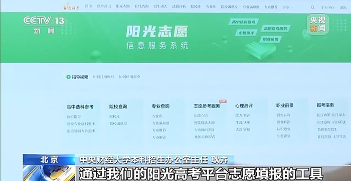 中央财经大学本科招生办公室主任 耿卉:通过我们的阳光高考平台志愿填报的这个工具,包括还有一些社会上免费的工具,我们都能够很容易根据自己预估的位次,先对高校进行一个大概范围的框定。