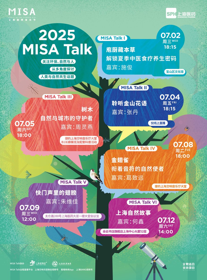 去年夏季音乐节首次推出的文化谈话栏目MISA Talk,以跨文化视角阐释当季主题,展现文化的立体切面。今年,MISA Talk聚焦人类与自然共生的话题,并首次走出音乐厅,与市民一同解锁生命密码。