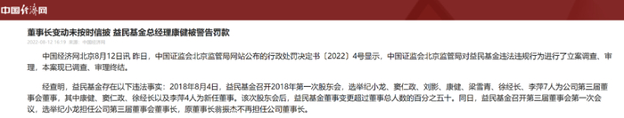 高管频繁变动带来的直接后果就是管理混乱。2022年,益民基金就因为董事长变动未及时信披,被北京证监局立案调查,同时罚款16万,相关人员也被处罚。