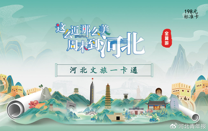 河北推出全省性文旅普惠产品“河北文旅一卡通”,整合河北省11城市200余家高品质热门景区及生活休闲场景,如白石山、嶂石岩、娲皇宫、金山岭长城、普宁寺等景点,满足各个年龄段的多样化出游需求,凡是与“河北文旅一卡通”签约景区,观众可全年不限次畅游,再也不用为“到了河北去哪玩儿”而烧脑。持有“河北文旅一卡通”的用户,一年内还可以在签约影院免费看五场电影。
