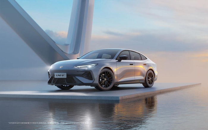 造型上,新车的前脸采用鲨鱼鼻仿生设计,线条凌厉且富有张力,搭配狭长的前大灯组,呈现出具有攻击性的前脸姿态。车身侧面,全新一代UNI-V采用溜背式设计,车顶的线条流畅地延伸至车尾。尾部除了贯穿式尾灯组外,还采用双边共四出的排气布局,强化了该车的运动属性。