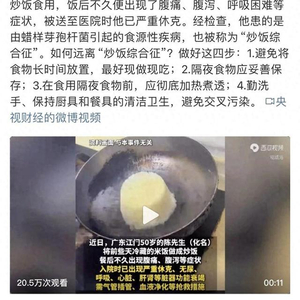 广东江门,50岁的陈先生(化名)将冷藏了几天的米饭做成炒饭食用后,不久便出现了腹痛、腹泻、呼吸困难等症状。