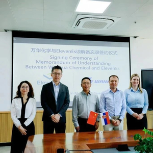 欧洲磷酸铁锂电池制造商ElevenEs Ltd.消息显示,近日,万华化学(600309)全资子公司万华化学集团电池科技有限公司(简称“万华电池”)和ElevenEs在四川眉山成功签署了一份谅解备忘录(MOU)。此次合作旨在建立涵盖LFP正极材料、PVDF(聚偏氟乙烯)粘结剂、NMP(N-甲基-2-吡咯烷酮)溶剂等产品的全面供应和技术合作伙伴关系,以促进双方在新能源行业的可持续发展。