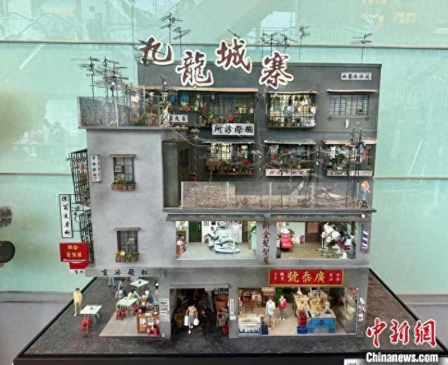 为了捕捉这种“生活感”,他们投入了大量时间进行“考古式”资料搜集。蔡璧龙说,在他们一手打造的微型世界里,每处细节都暗藏故事:庙街夜市蒸腾的热气仿佛透过模型扑面而来,褪色的霓虹灯管下,摊主正卖力吆喝招揽食客;九龙城寨层层叠叠的“握手楼”间,交错的电线编织成密网,墙根处斑驳的旧海报在岁月侵蚀下蜷缩起边角。