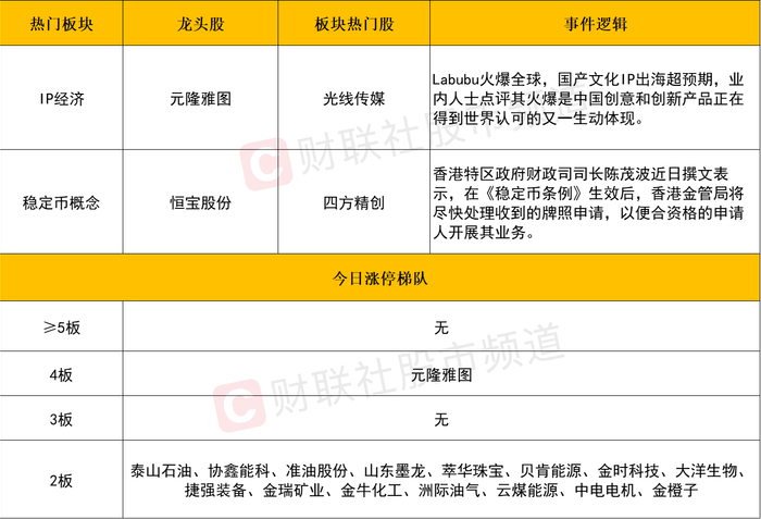 【每日收评】三大指数低开高走全线收红,IP经济强势领涨,稳定币概念卷土重来