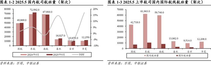 2.1.2 量:2025年5月货运执飞航班量国内航线同比下降,国际航线同比上升