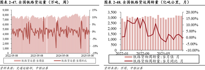 6月2日-6月8日,国家铁路累计运输货物7631万吨,环比下降1.71%。根据交通运输部发布数据显示,2025年4月,全国铁路货运周转量为3018.66亿吨公里,同比增长8.40%。