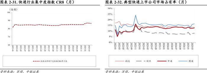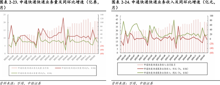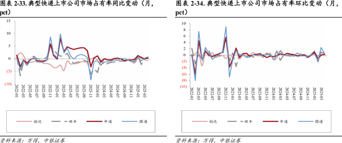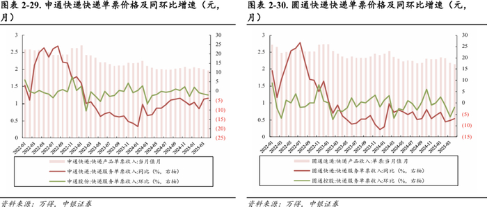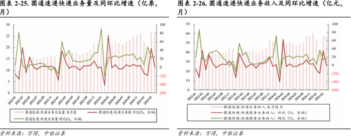 圆通速递:2025年4月单票价格2.14元,同比-6.96%(-0.16元),环比-1.83%(-0.04元)。
