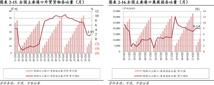 2.2.2量:2025年1-4月全国港口货物、集装箱吞吐量分别为57.55亿吨/11225万标箱