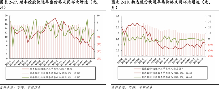 顺丰控股:2025年4月单票价格13.49元,同比-13.91%(-2.18元),环比-2.39%(-0.33元)。