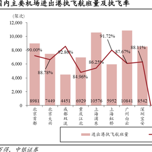 机场方面: 2025.6.7-2025.6.13:国内进出港执飞航班量TOP5机场依次是广州白云机场(10841班次)、上海浦东机场(10576班次)、北京首都机场(8981班次)、深圳宝安机场(8542班次)、成都天府机场(7776班次)。各枢纽机场国内航班量周环比变化:首都-0.76%、大兴+0.38%、双流+0.41%、江北-0.46%、浦东-2.10%、虹桥+0.29%、白云-1.87%、宝安-2.37%、三亚-18.19%、海口-9.64%、萧山+0.12%、天府-1.77%、咸阳-1.63%。