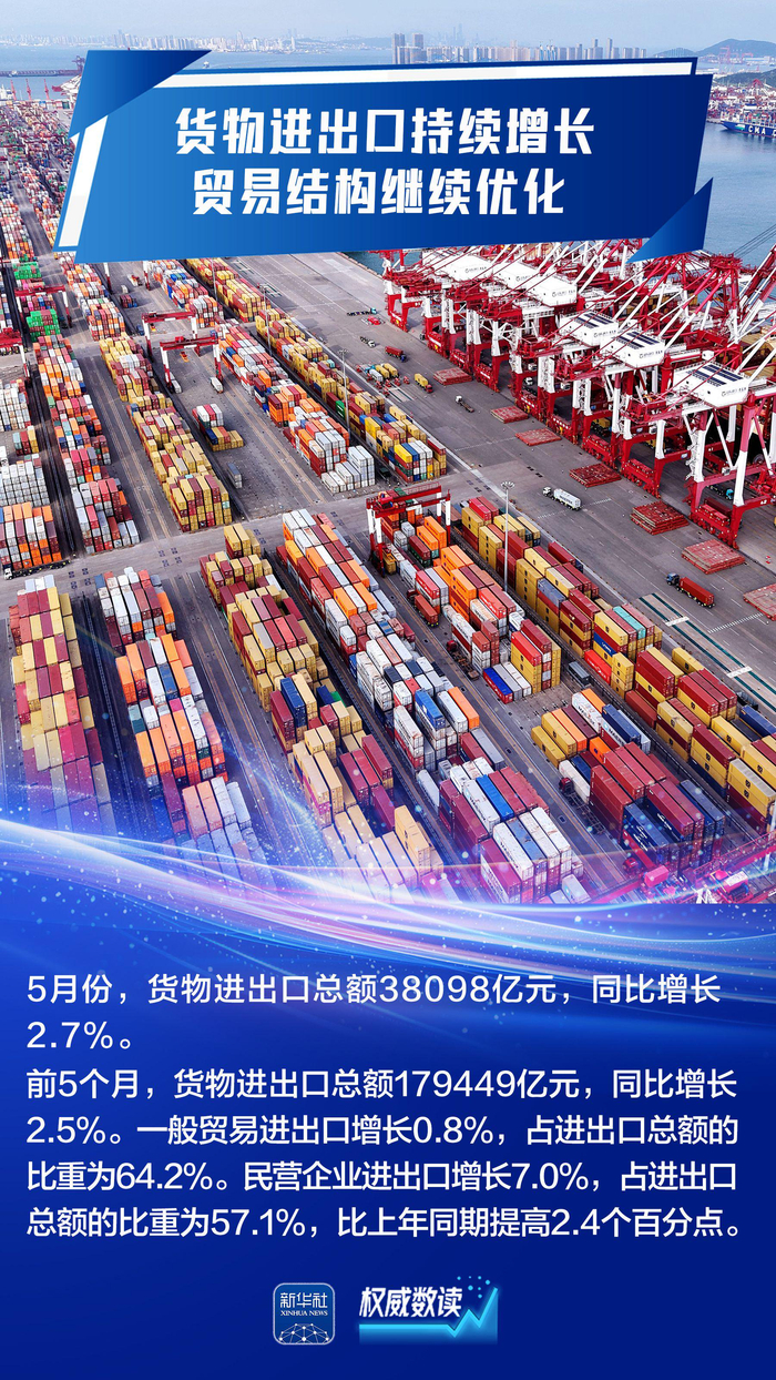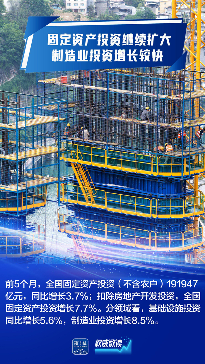 国家统计局、国家邮政局、中国人民银行等部门近日陆续发布5月份及前5个月我国经济运行相关数据。