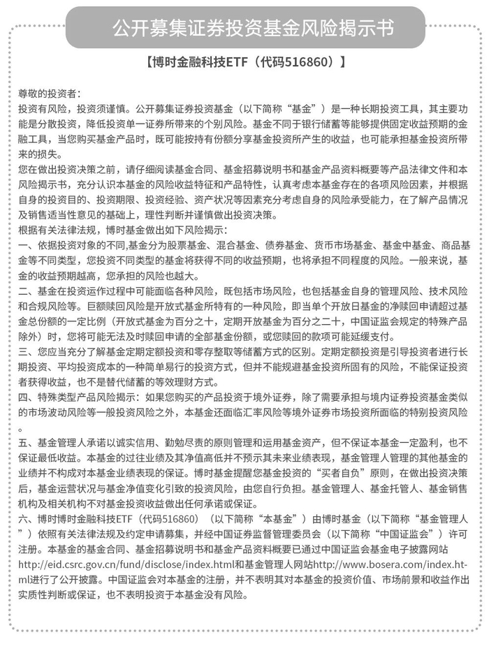 博时金融科技ETF(代码516860,中高风险)紧密跟踪中证金融科技主题指数,该产品风险等级为管理人评级,具体销售以各代销机构评级为准。