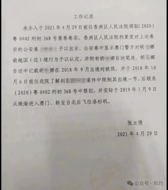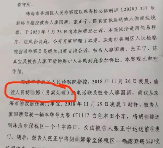珠海市香洲区法院(2020)粤0402刑初368号刑事判决书。这份判决书显示,Tiffany从珠海出境的方式,竟然是偷渡。