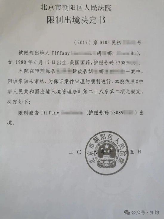 一年多后,朝阳法院对同时持有中国护照和美国护照的她发出限制出境令,这让随意伪造手续出入美国、中国的她,第一次受到人身限制。