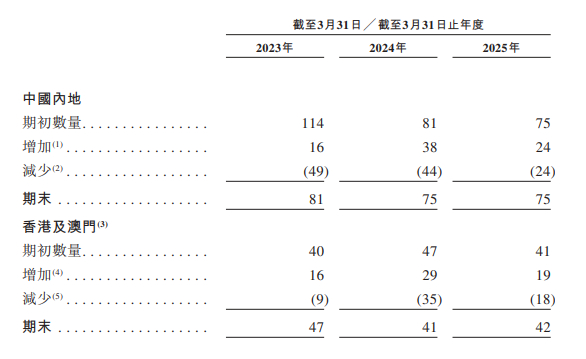 "但其他品牌基本不会赚钱,无论在台北、在香港,还是在上海的商场里开专柜都不会赚钱。”在小林看来,在高档商场里开店可以看作是一种品牌营销,不过是成本非常高的那种。在颖通,75家在中国内地的自营门店中有49家是亏损的,香港澳门的42家门店中有33家的门店是亏损的(截至2025年3月31日)。同时在2023-2025年间,公司的门店开关很频繁。