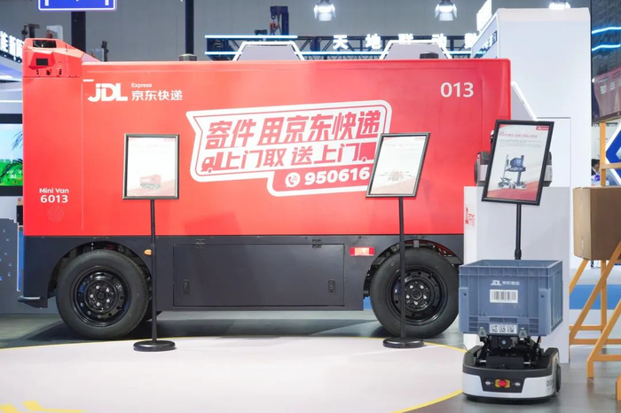 此次展示的京东物流独狼是京东物流打造的第六代智能配送车,最高速度可达60km/h,最大载重1000kg,可实现24小时不间断工作,能适应多种复杂天气条件。在自动驾驶方面,其搭载了感知大模型、点云视觉融合等最新技术成果,较前代产品检测范围扩大19倍、感知性能提升3倍,能够以更高速度、更安全、更稳定地实现L4级别自动驾驶。