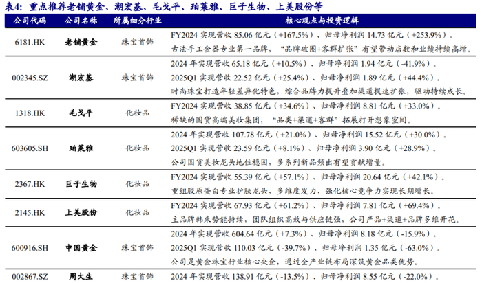 投资主线一(黄金珠宝):关注具备差异化产品力和消费者深度洞察力的黄金珠宝品牌,重点推荐老铺黄金、潮宏基、周大生等;
