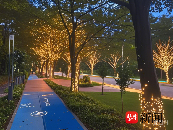 城市绿化增色添藤专项则为梁鸿路披上四季霓裳。春日里,虞美人摇曳生姿,粉若云霞;盛夏时,马鞭草紫浪翻涌,与湿地风光相映成趣。四季更迭间,这里始终是一幅流动的自然画卷。照明专项在振鸿路绽放光彩,“火树银花”的亮化工程与花坛、雕塑的装饰性照明相互辉映,夜幕降临,璀璨灯光不仅勾勒出城市的灵动轮廓,更点亮了市民的夜生活,成为拉动夜间经济的新引擎,为城市注入活力与温情。
