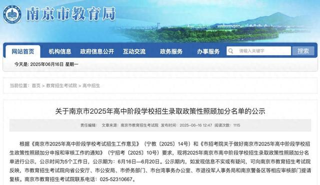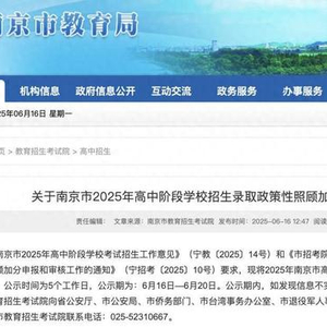 6月16日,南京市教育局公布了南京市中考享受照顾加分政策考生名单,一起来看——