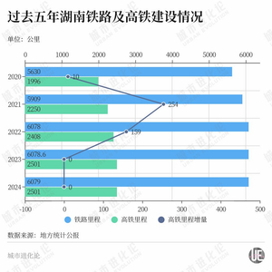 近年,湖南高铁建设整体放缓。根据国家铁路局最新发布《2024年铁道统计公报》,去年全国铁路固定资产投资完成8506亿元,投产新线3113公里,其中高速铁路2457公里。这当中,湖南的新建高铁里程数为零,这已经是湖南连续两年没有新建线路“入账”。