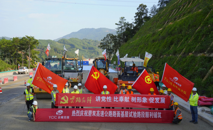 近日,碧双高速公路建设项目迎来重要节点——全长300米的水泥稳定碎石基层试验段在主线右幅顺利完成铺筑作业。