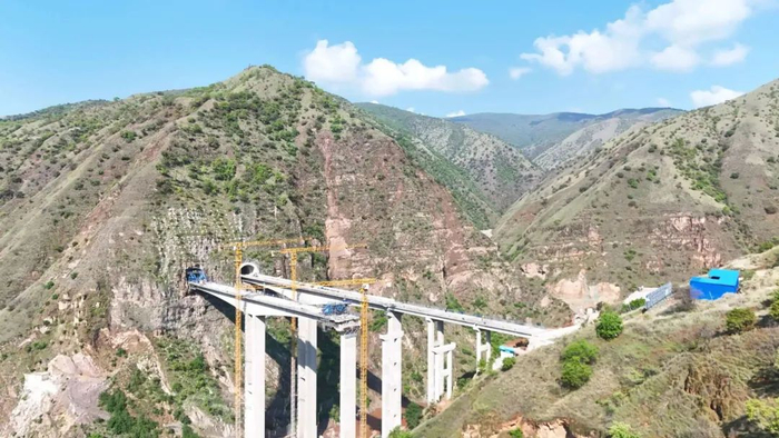 徐家山特大桥横跨V型深谷,谷深达188米,桥梁采用左右线分离式设计,桥宽12.5米,主跨178米,为全线控制性工程和重点攻坚工程。