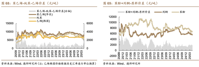 苯乙烯:本周苯乙烯(华东)价格为7775元/吨,环比+4.3%。市场方面,首先在宏观方面,中美经贸磋商释放出乐观信号,对EB盘面指引性偏强,原油价格受中东局势升级影响大涨短时利好苯乙烯盘面。其次苯乙烯周内存大量补空,盘面出现持续性逼仓操作,是带动EB走势拉涨明显的关键,即便是在高利润的诱惑下,多数国内停车装置重启与计划即将回归,国产供应趋势增加,但本周苯乙烯行情与基差也整体呈现出大涨之势。且由于原料纯苯装置检修计划有延期,下游装置存在个别负反馈消息,纯苯行情涨幅不及苯乙烯,SM-BZ价差略有走扩,苯乙烯自身行业盈利空间仍有良好维持。