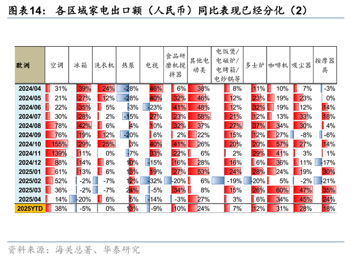 2)欧洲,大家电仅空调、热泵较好,小家电普遍回升。