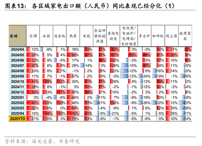 1)亚洲,大家电仍积极,小家电明显弱化。