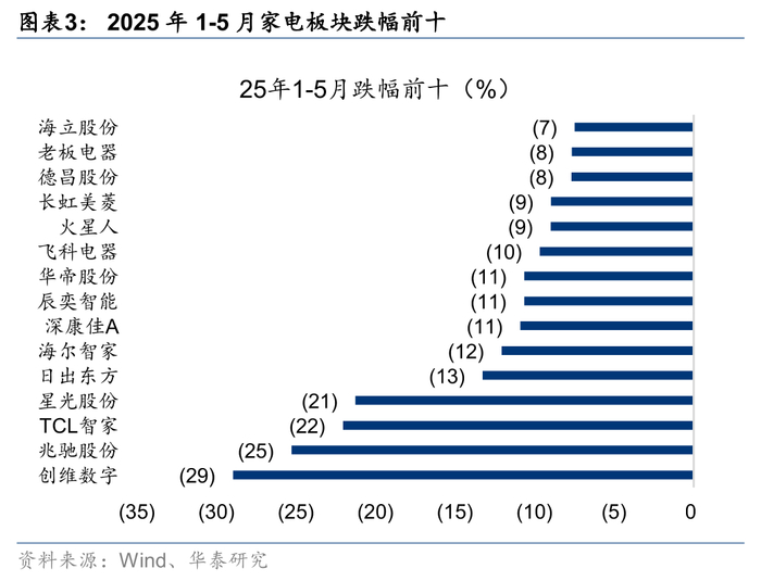 2) 家电出口: 2025年2月起,美国对中国产品不断调整关税政策,并在2025年4月将附加关税提升至125%,市场避险情绪浓重,出口占比较高的家电个股估值明显承压。5月随着中美日内瓦经贸会谈成果落地,关税加征幅度下降,出口链相关标的估值明显修复。