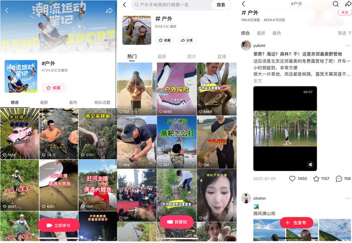 用户在社交媒体分享户外运动,博主加入传播链,再经平台助推,户外的具体项目就能汇聚成潮流。