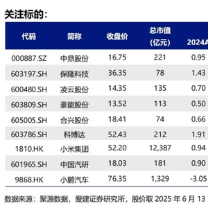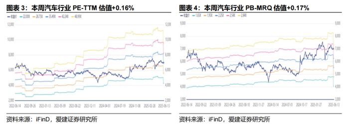 估值方面,截至6月13日收盘,汽车行业PE(TTM)为35.16倍(上周为30.44倍);汽车行业PB(MRQ)为2.81倍(上周为2.40倍)。