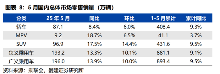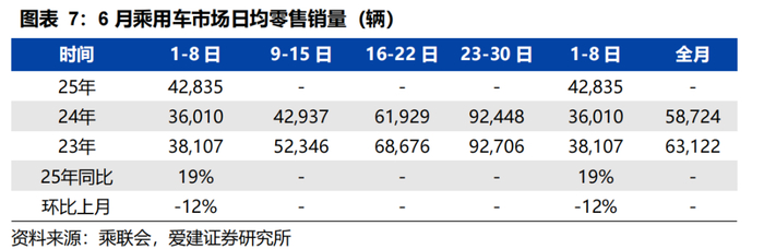 6月第1周乘用车市场日均零售4.3万辆,同比+19%,环比-12%。6月1-8日,全国乘用车市场零售34.3万辆,同比+19%,环比-12%;2025年以来累计零售915.9万辆,同比+10%。
